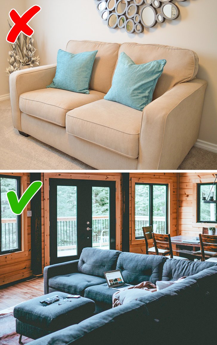 Kê tất cả đồ đạc sát tường là một trong những sai lầm phổ biến khi thiết kế nội thất.