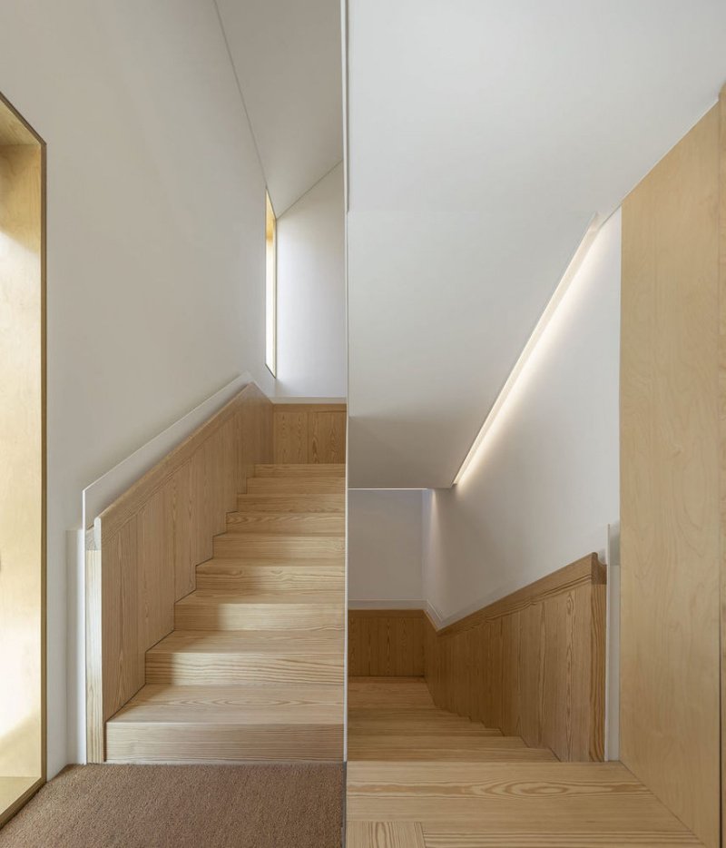 Nhà 3 tầng ở Bồ Đào Nha gây thiện cảm với người ngắm ngay từ cái nhìn đầu tiên bởi lớp gỗ ốp ngoại thất tông màu ấm áp và khung cửa kính cao rộng mở ra tầm nhìn thoáng đẹp, giúp kết nối chặt chẽ với cảnh quan bên ngoài.