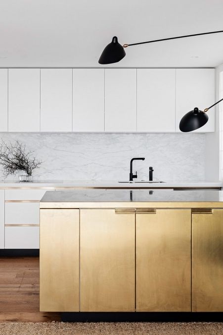 Vàng ánh kim – Sự nổi bật và phá cách là ấn tượng đầu tiên mà phòng bếp màu vàng ánh kim tạo ra cho mỗi vị khách ghé thăm. Ngoài ra, nội thất màu vàng ánh kim còn mang đến cảm giác trang trọng, “sang chảnh”.